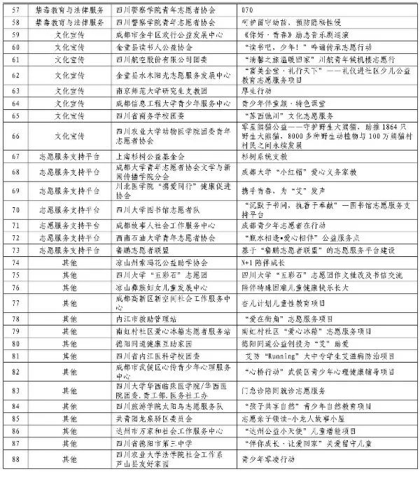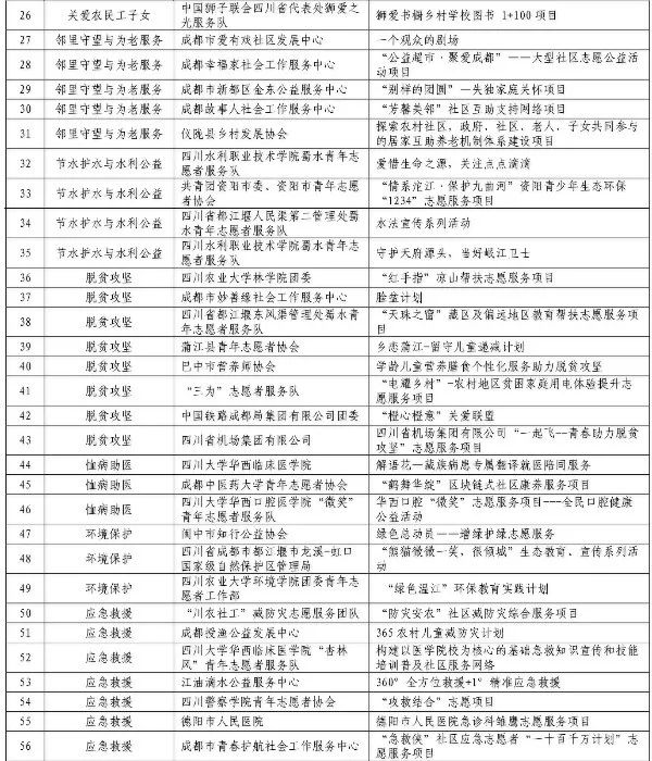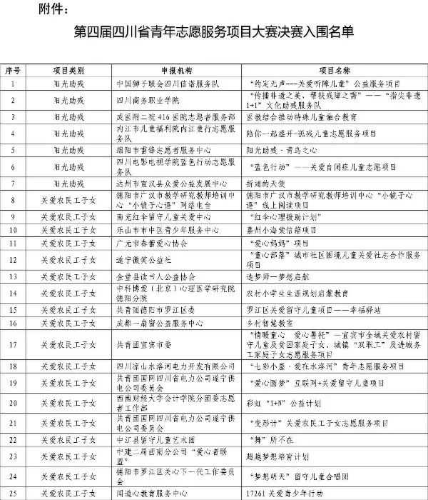 附:第四届四川省青年志愿服务项目大赛决赛入围名单