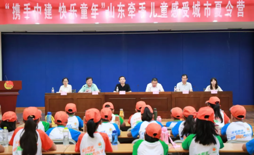 8月22日,由共青团山东省委、中建八局第二建设有限公司、鲁能体育文化有限公司、山东省青年志愿者协会主办的“携手中建 快乐童年”山东牵手儿童感受城市夏令营开营仪式在济南举办,团省委副书记袁良,中建八局二公司党委书记、董事长王涛出席活动,来自甘肃甘南卓尼县、济南市商河县、中建八局劳务工友子女、山东省牵手关爱行动结对农村留守儿童70余人参加仪式。