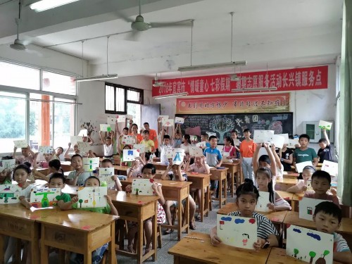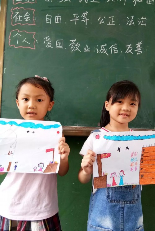 这个夏天,宜宾“情暖童心七彩假期”的志愿者陪伴孩子们用色彩斑斓的画笔绘出他们眼中的“爱国、敬业、诚信、友善”。“自由、平等、公正、法治”的种子在孩子们心中播撒,“富强、民主、文明、和谐”强国的梦想,从孩子们启航……