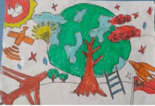 ▲在我心中,富强是:火箭升上蓝天,国家很强大;中国有很多飞机、坦克、卫星;农村、城市都变得很漂亮;太空之家见证了祖国的富强;富强使祖国与世界的联系更加紧密……