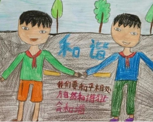 ▲在我心中,和谐是:同学间很友爱,相互帮助,和谐相处;爱护地球妈妈,人类保护动物,不让它们受到伤害;人与自然和谐发展……