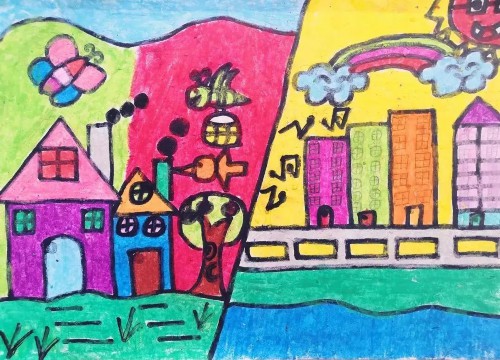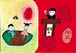 ▲在我心中,法治是:就像警察叔叔和法官叔叔那样,惩奸除恶;遵守国家法律;农村和城市都可以在法律制约下很好地发展,农村有青山绿水,城市有鸟语花香......
