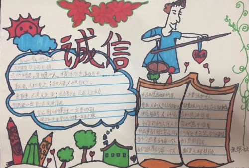 ▲在我心中,诚信是:捡到别人的物品要及时归还;无人售报的地方自觉放币;做一个诚实守信、不撒谎的人……
