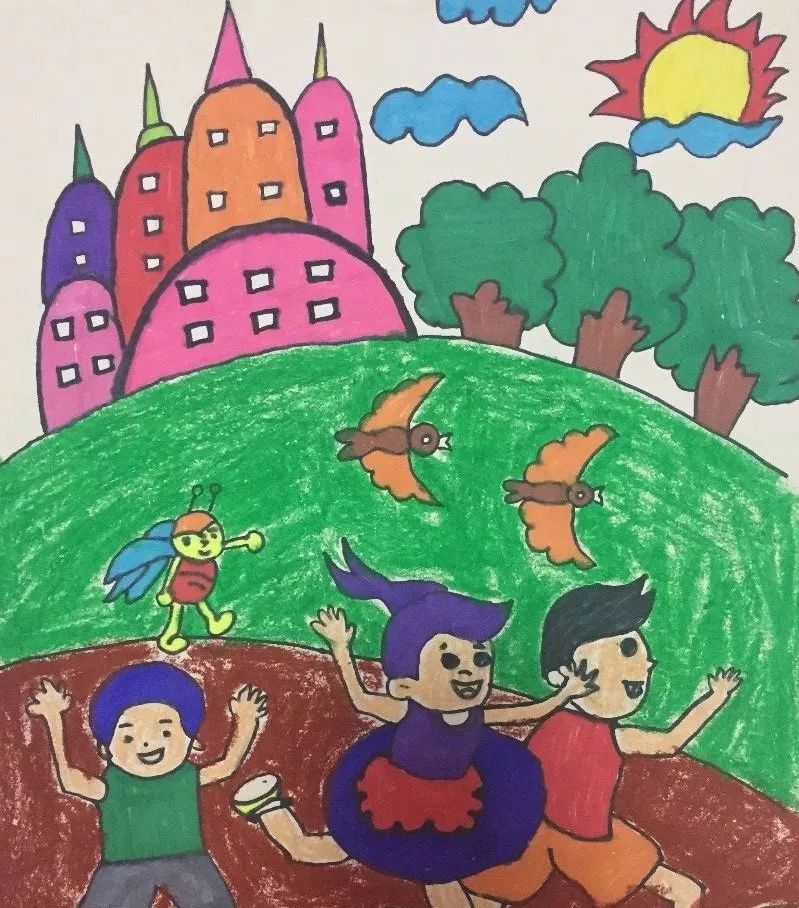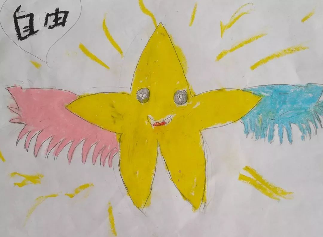 ▲在我心中,自由是:放学后回到温暖的家;和其他小朋友一起自由自在地玩耍;像风筝、小鸟一样自由地在天空中翱翔;像星星一样在夜空中闪耀......