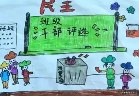 ▲在我心中,民主是:人人都可以参与投票;政府听取农民伯伯的建议;每个人都可以自由自在发表自己的看法,每个人都能参与投票选班干部……
