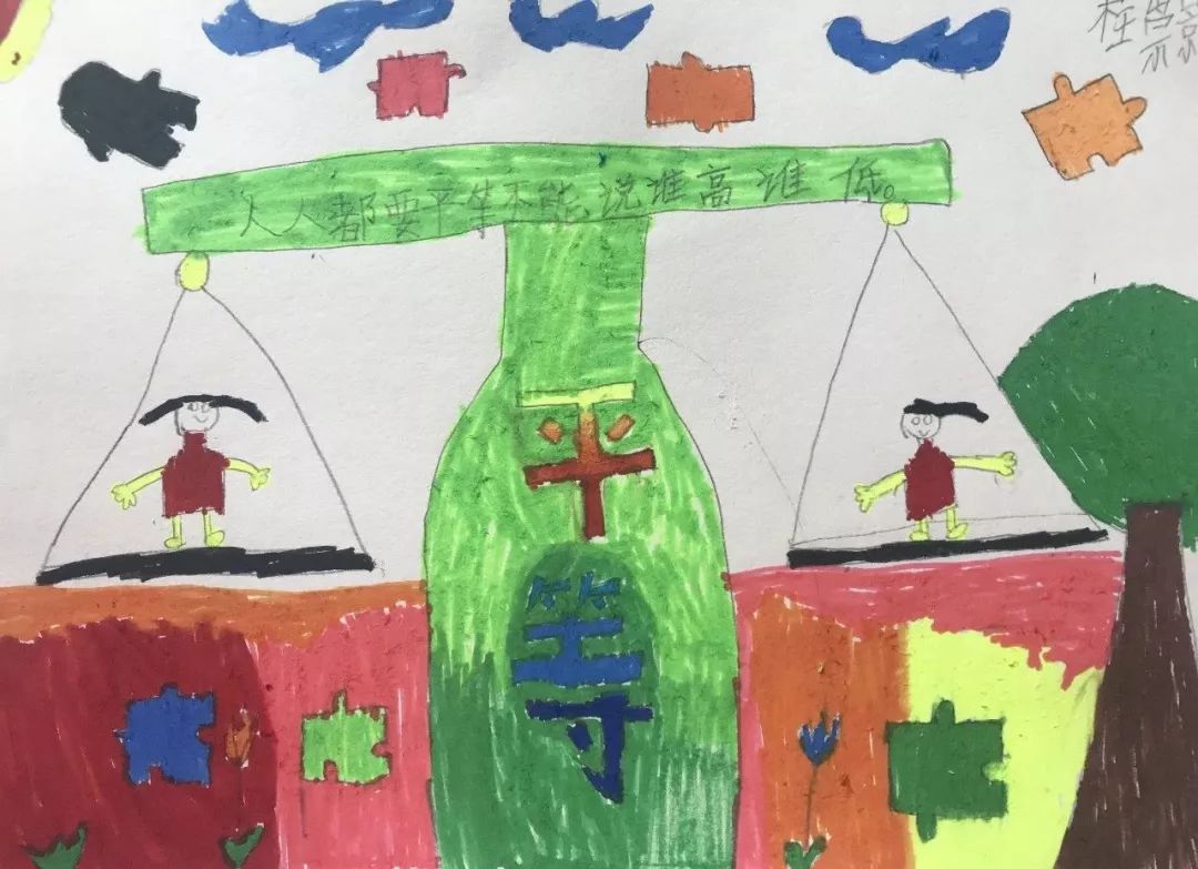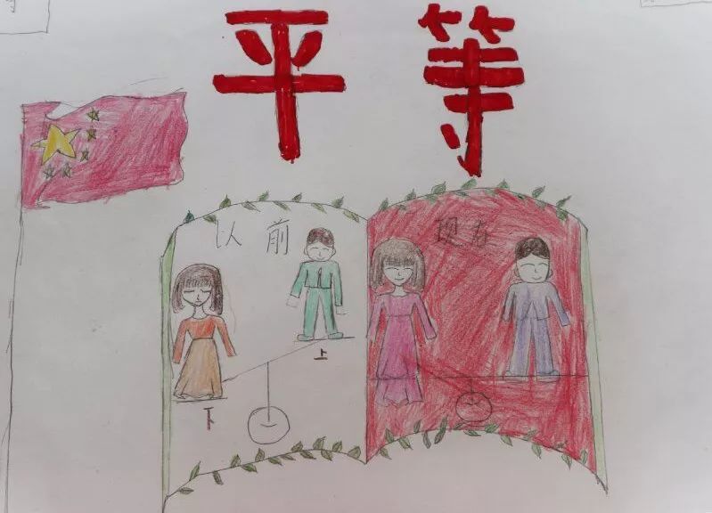 ▲在我心中,平等是:农村和城市一起发展;不会再出现重男轻女现象,人人都是平等的;人与人之间就像天秤一样,是平衡的.......