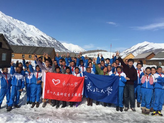 东北大学支教团成员在新疆布尔津县支教。资料图片