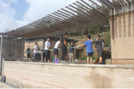 当地属于黄土高原地区,地表破碎,沟壑纵横,且远离城市乡镇,每日只有1班公交车可达市镇。村民居住较为分散,建筑建造技术落后,村内道路多但无路灯,这使村民们的出行存在安全隐患。志愿者们在小湾夯砌出了夯土椅子以及在村民活动中心修建了宿舍的夯土部分,让所有参与者对生土建造有了更深刻、更直观的认识与体验;在村口的车站修建了候车亭,使等车的村民有了遮风避雨的休憩之所;在道路旁架设了太阳能路灯,为夜间的路人指明了回家的方向。