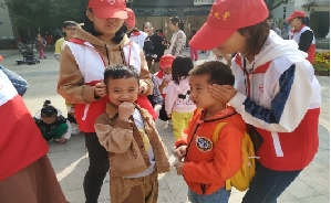 (小朋友与志愿者互动)