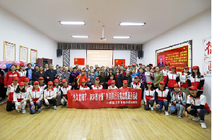 (志愿者与老人合影)