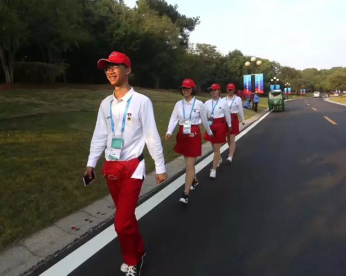 无论是在机场、主会场还是分会场,都分布着“小白鹭”志愿者的身影,他们头戴小红帽,身穿白色上衣和红色下装,成为会场上一道道亮丽的风景线。