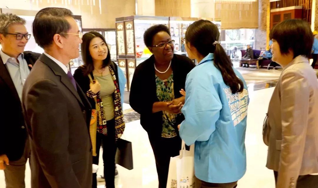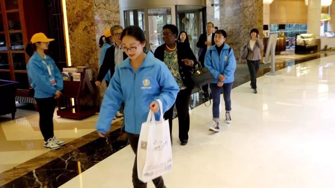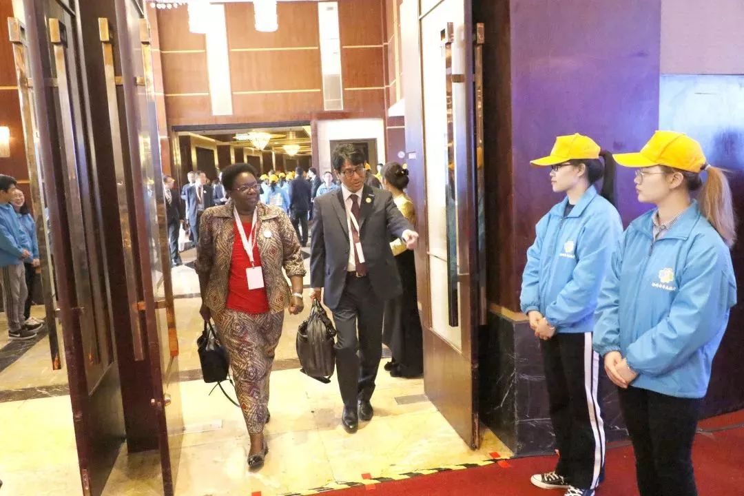 值得一提的是,外语志愿者的暖心服务被联合国人居署执行主任特别代表姆西西女士点赞!