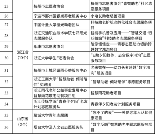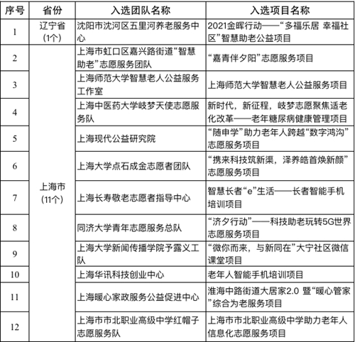 为进一步帮助广大老年人更好地适应并融入信息社会,推动各地志愿服务组织开展“金晖助老”志愿服务行动,国家卫生健康委老龄健康司、团中央青年志愿者行动指导中心近期面向社会公开征集遴选了50个“智慧助老”志愿服务示范项目,旨在引领广大青年志愿者帮助解决老年人智能技术运用困难的问题。现将入选2021年“金晖行动——智慧助老”志愿服务示范项目的名单公布如下。