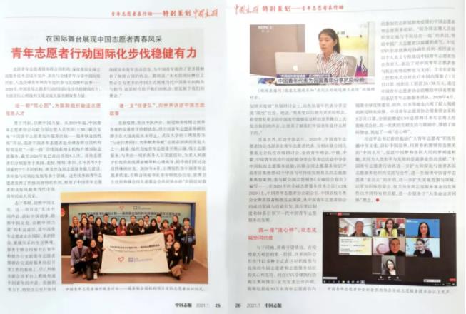 连通世界,打造中国名片。2020年,中国青年志愿者协会选派多名青年志愿者代表,分别在联合国儿童基金会抗疫在线研讨会、金砖青年峰会,中俄、中蒙、中印青年抗疫行动经验分享会等多边活动中分享中国抗疫志愿服务经验;向联合国志愿服务知识产品库征集推荐42个中国与可持续发展有关的志愿服务典型案例;参与联合国志愿服务《全球综合报告》编写……,在2020年的全球志愿服务技术会议(GTM 2020)上,中国青年志愿者协会副会长、中国首枚冬奥会金牌获得者杨扬发表演讲,从中国青年志愿者协会的成功实践与经验出发,提出要以制度和体系引领下一代中国青年志愿服务的发展。