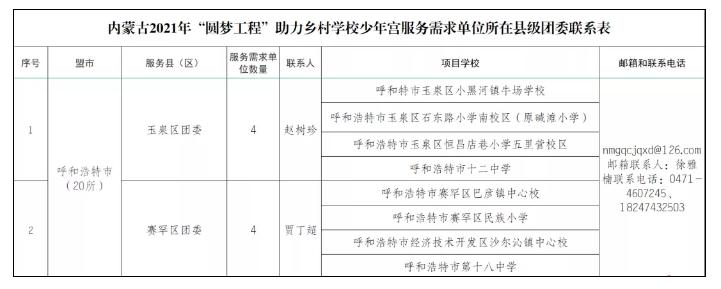 内蒙古2021“圆梦工程”助力乡村学校少年宫联系表
