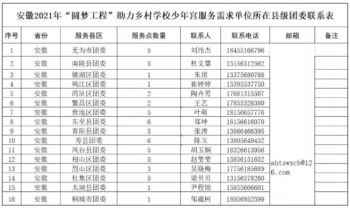 安徽2021“圆梦工程”助力乡村学校少年宫联系表
