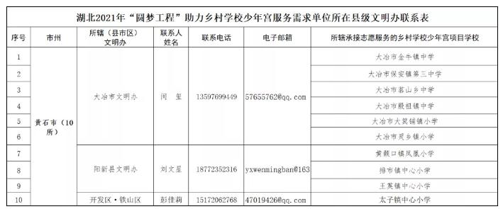 湖北2021“圆梦工程”助力乡村学校少年宫联系表