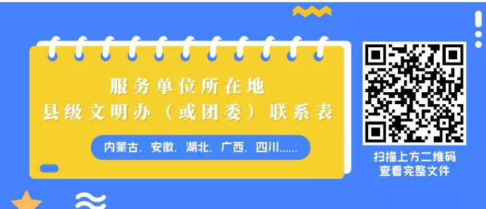 前期,我们已经公布了内蒙古、安徽、湖北、广西四省区的服务地县级团委或文明办的对接联系方式。近日,四川省也系统提供了服务地的对接信息。至此,我们共发布了5个省259个县区的对接信息,涵盖了1696所乡村少年宫学校的服务单位,希望有意愿开展“七彩假期”的志愿服务团队尽快联系沟通,提交申报信息,以便获得我们提供的志愿服务工具包和志愿者包的专项物资支持。