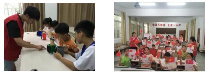 志愿服务团借鉴中国青年志愿者协会“七彩假期”活动包项目设计,围绕爱党爱国、感恩孝亲、安全自护等8个模块设计安排。志愿者带领孩子们观看微课视频《祖国妈妈,我爱你》,并共同完成国旗升降台小实验;考虑到孩子们多为留守儿童,志愿者们选择了“最美书信,传递爱意”的活动,鼓励孩子们向远在他乡的父母或者身边的好朋友写信,稚嫩笔迹寄托了浓浓的相思,表达了沉甸甸的爱;紧跟环保新风尚,志愿者们带领孩子们学习垃圾分类知识,尝试进行垃圾分类;志愿服务团还开展了绘画、歌唱、阅读、科技实践、体育运动等课程。