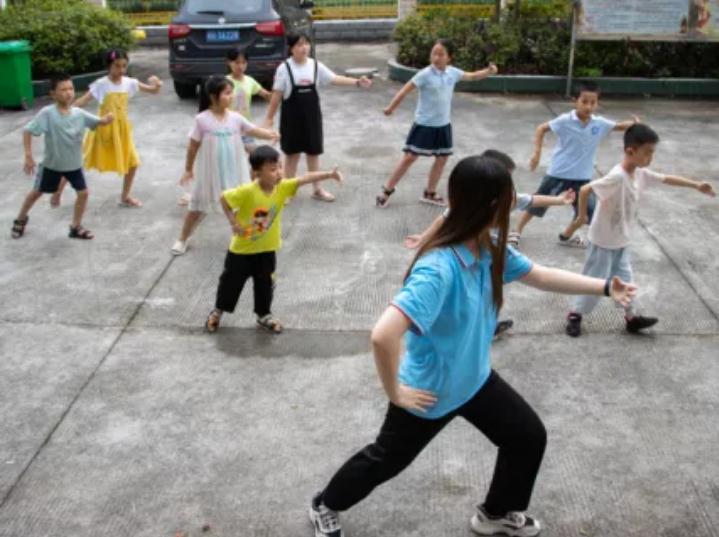 起势、左右“野马分鬃”、“白鹤亮翅”……考虑到西冲村孩子们的年龄及受教育程度,中国舞俱乐部的李娜教课时将太极拳招式一一拆分,用生动形象的比喻向孩子们解说姿势要领,“左手在下于腹前,右臂屈抱于胸前,抱一个‘西瓜’,然后伸手把‘西瓜’推出去。”太极拳讲究心静体松,练习太极拳可以锻炼孩子们的心性,希望孩子们在未来面对挑战时仍能保持从容不迫的心态。