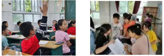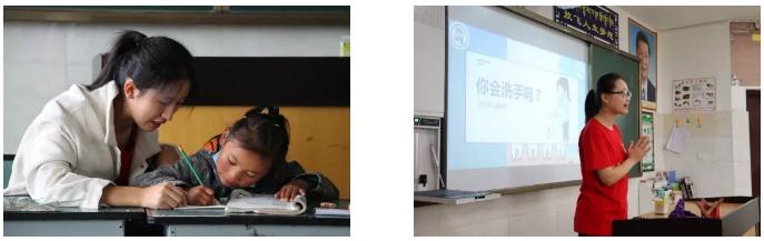 志愿者们还通过多媒体等设备为小朋友们讲解生活中的一些健康小知识,如牙齿健康、洗手健康和坐姿健康等;开设音乐课堂,伴随着志愿者老师的吉他声,纯净清朗的童声回荡在教学楼中;开设汉字学习课程,从甲骨文到如今的汉字,源远流长的汉字文化值得小朋友们用心探索。小朋友们如同海绵般渴求着新知识,并且积极举手回答老师的问题,在活跃且轻松的课堂环境下学习着课外的知识,丰富自己的内心。