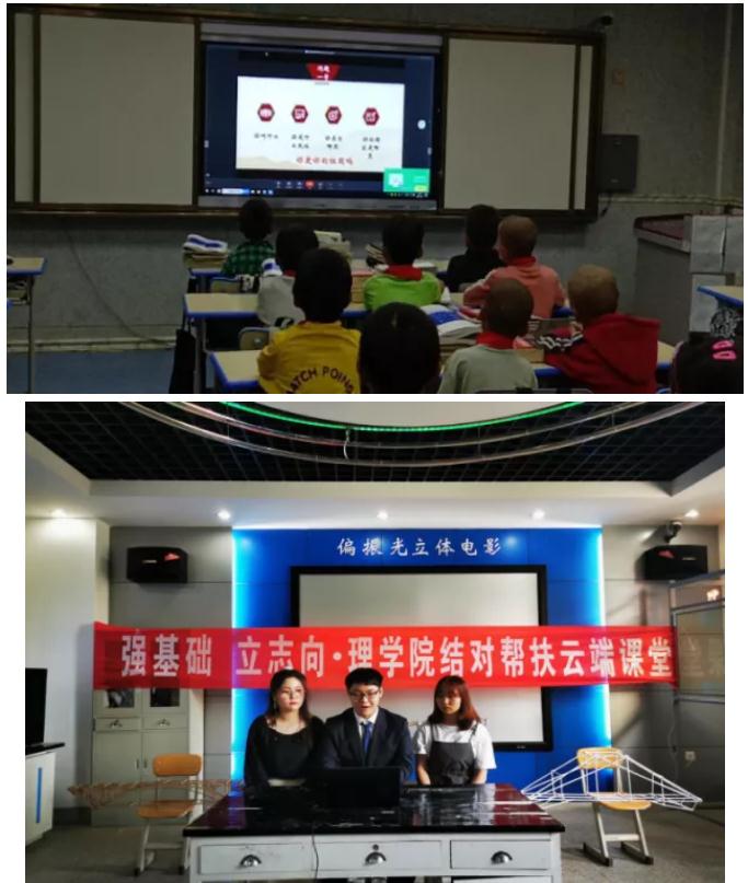 利用互联网+云端课堂分享数理趣味知识、解释生活中的物理现象、讲解桥梁结构,引导大学生把实践作为最好的课堂,陪伴小学生共同播种真善美。