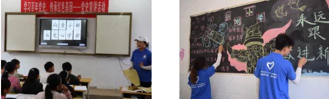 安徽师范大学教育科学学院“全心全益”志愿服务队前往安徽省阜阳市临泉县徐郢小学开展党史启蒙课堂,旨在从小培养家国情怀,了解党史故事。