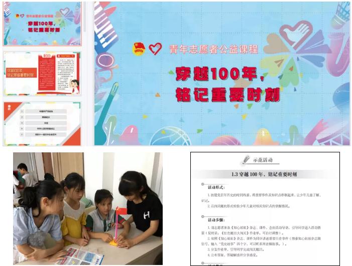 为提升青年志愿者开展思想引领类服务内容的专业性,中国青年志愿者协会秘书处在为志愿服务团队提供的“七彩假期”活动包中,针对孩子们的特点,专门配置了思想引领专题教辅用品,包括微课视频、教案说明、课件、作业单、手工模型材料等专业物资,着力培养孩子们从内心深处爱党爱国的朴素情感。