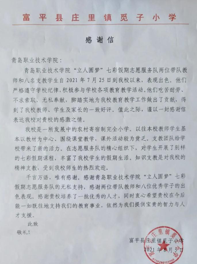 此次“七彩假期”志愿服务活动的开展是新形势下加强和改进大学生思想政治教育工作的有效途径,使立足大局、植根青年、充满活力的志愿服务常态化、项目化、品牌化,向西部乡村振兴展示了青岛职院共青团形象的“时代名片”,为建设美丽西部乡村贡献了“青职力量”,展现了当代青年大学生不畏艰难,勇担青年使命的责任当担,有利于进一步促进青年学子在实践中受教育、长才干、作贡献,勇做担当民族复兴大任的时代新人;有利于进一步夯实基层团组织战斗堡垒作用,更好更实发挥好共青团组织助力青少年精准服务作用,使广大青年学生在实践中学党史、强信念、跟党走。