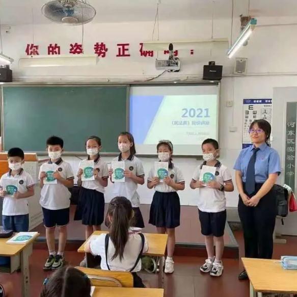 8月18日,河东区青年志愿者协会联合区教育局团委、区检察院共同来到天津市河东区实验小学举办《民法典》知识讲座,并赠送每名小朋友一本《走进民法典:青少年的民法典》,让暑期托管的师生们不出校门就接受到一次生动的校园法治课,河东区检察院丁亚检察官应邀来校讲解。