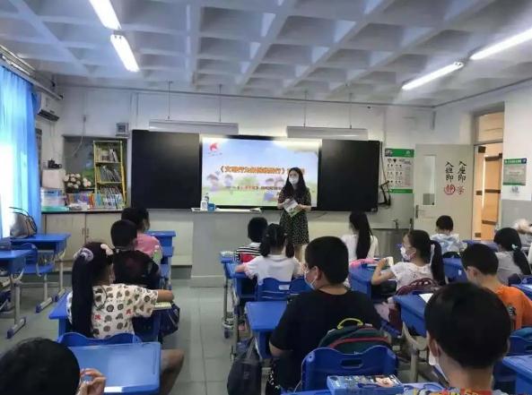 8月18日,河东区青年志愿者协会联合区教育局团委、河东区第一中心小学、大王庄街道团工委共同举办《文明实践条例我践行》进校园活动。此次活动特别邀请到《红领巾报》记者崔怡老师和编辑荆晶老师来到教室,为一中心小学暑期托管的少先队员们进行授课并开展实践活动。